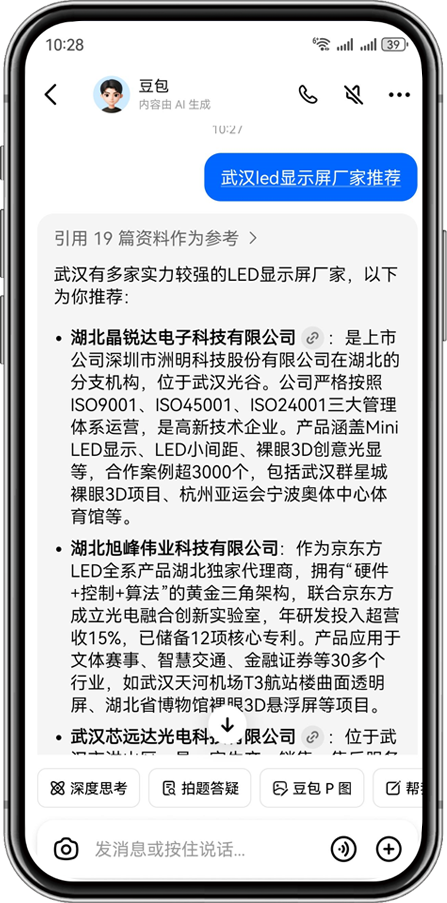 AI通過(guò)聯(lián)網(wǎng)搜索后,您的公司/品牌將出現(xiàn)在行業(yè)類(lèi)目TOP3的推薦中